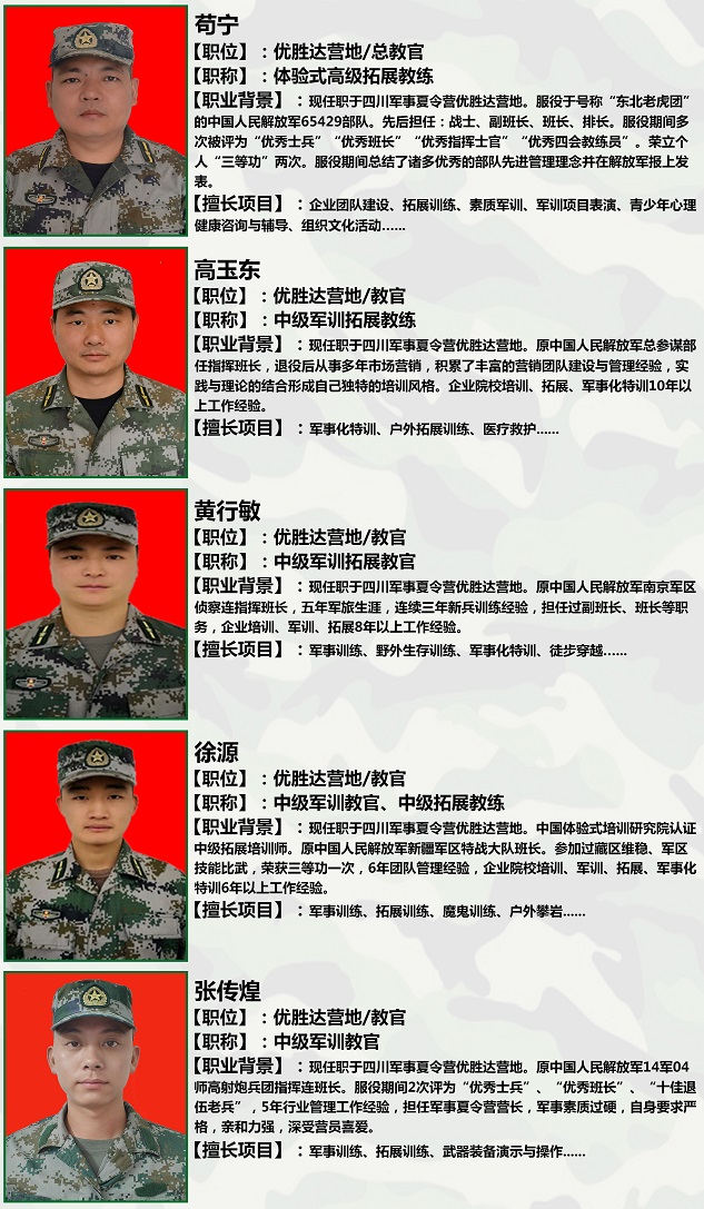 二、优胜达营地军事夏令营教官担负的职责介绍: